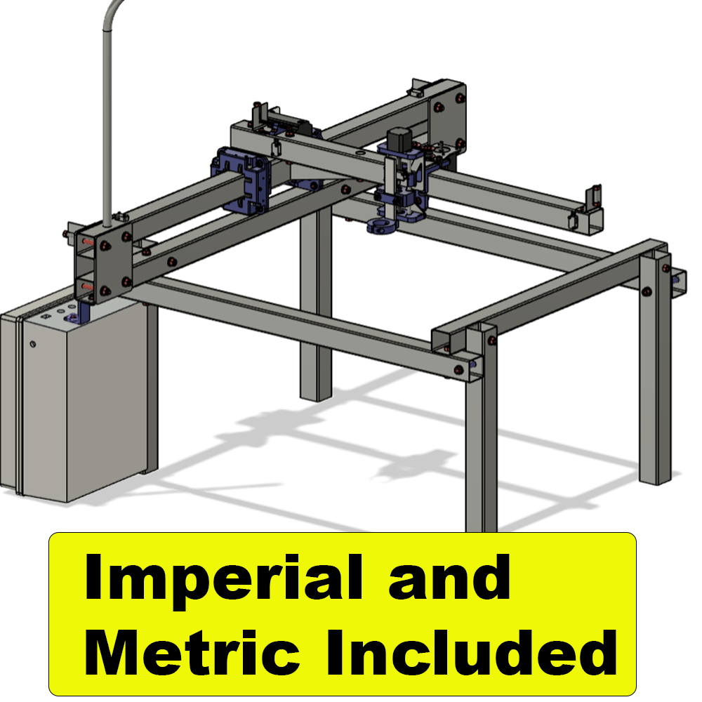 This is a set of plans to build a 2 or 3 axis budget CNC plasma cutter using metal tubing and 3D printed parts. Plans include 3 dimensional drawings of all metal parts, .stl files for 3D printed parts and a complete bill of materials list to complete this project. Open source firmware and software will need to be loaded onto the ESP32 to complete the electrical function of the machine. This process is detailed in the instructions.